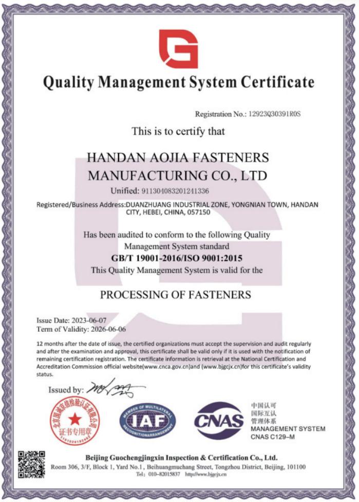 English Name: Handan Ao Jia Fastener Manufacturing Co., Ltd.